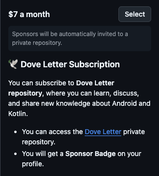 By subscribing via GitHub Sponsors, you will automatically be invited and granted access to the Dove Letter main page and GitHub repository. The subscription price is monthly $7 for now but may gradually increase for later subscribers.